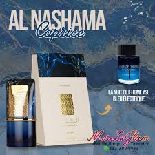 Al Nashama Caprice de Lattafa Perfumes es una fragancia de la familia olfativa para Hombres y Mujeres. Esta fragrancia es nueva. Al Nashama Caprice se lanzó en 2024. Las Notas de Salida son cardamomo, jengibre, bergamota y limón (lima ácida); las Notas de Corazón son lavanda, geranio y menta; las Notas de Fondo son ámbar, cedro, vetiver y pachulí